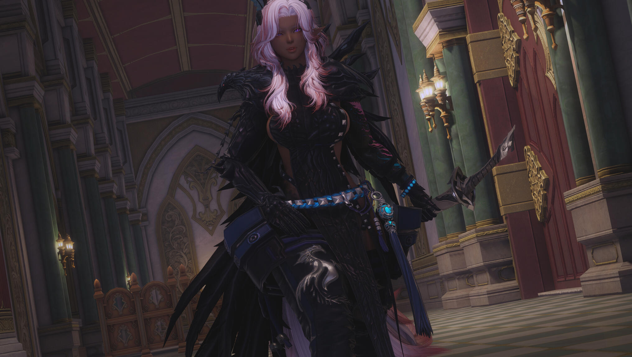 Aldra stepped out of Kugane Castle, her report to the magistrates delivered—another case of sudden aether thefts resolved. Yet even as the officials praised her efficiency, something within her felt… unsteady. The shift in her appearance—hair, eyes, even the hue of her tail turning a silvery pink—had brought an unexpected sense of wholeness, as though pieces of herself that had long been splintered were finally aligned. Her body felt complete.But her instincts told her the unease was different. Deeper. Not tied to the transformation, but to the quiet, pulsing intuition that she wasn’t alone inside her own skin. The idea seemed impossible… and yet the thought of pregnancy lingered stubbornly in her mind. She needed answers.With Void Naught resting in her left hand, Aldra made her way toward the district where Kugane’s nurses and white mages tended the people. But before she reached the steps leading down from the castle walkway, her senses flared. A petty thief, bold enough to strike within the halls of the bakufu, lunged for an unsuspecting traveler.Aldra’s response was instinctive.She drew her odachi in a single motion, crimson light rippling along the blade as its edge sang. In the next breath she was upon the would-be robber, disarming him cleanly—mercifully—before the guards could even react. The thief fled, stumbling, and Aldra sheathed Void Naught without a word.There were more pressing truths she needed to face.And so she continued on, her steps steady despite the questions twisting quietly within her