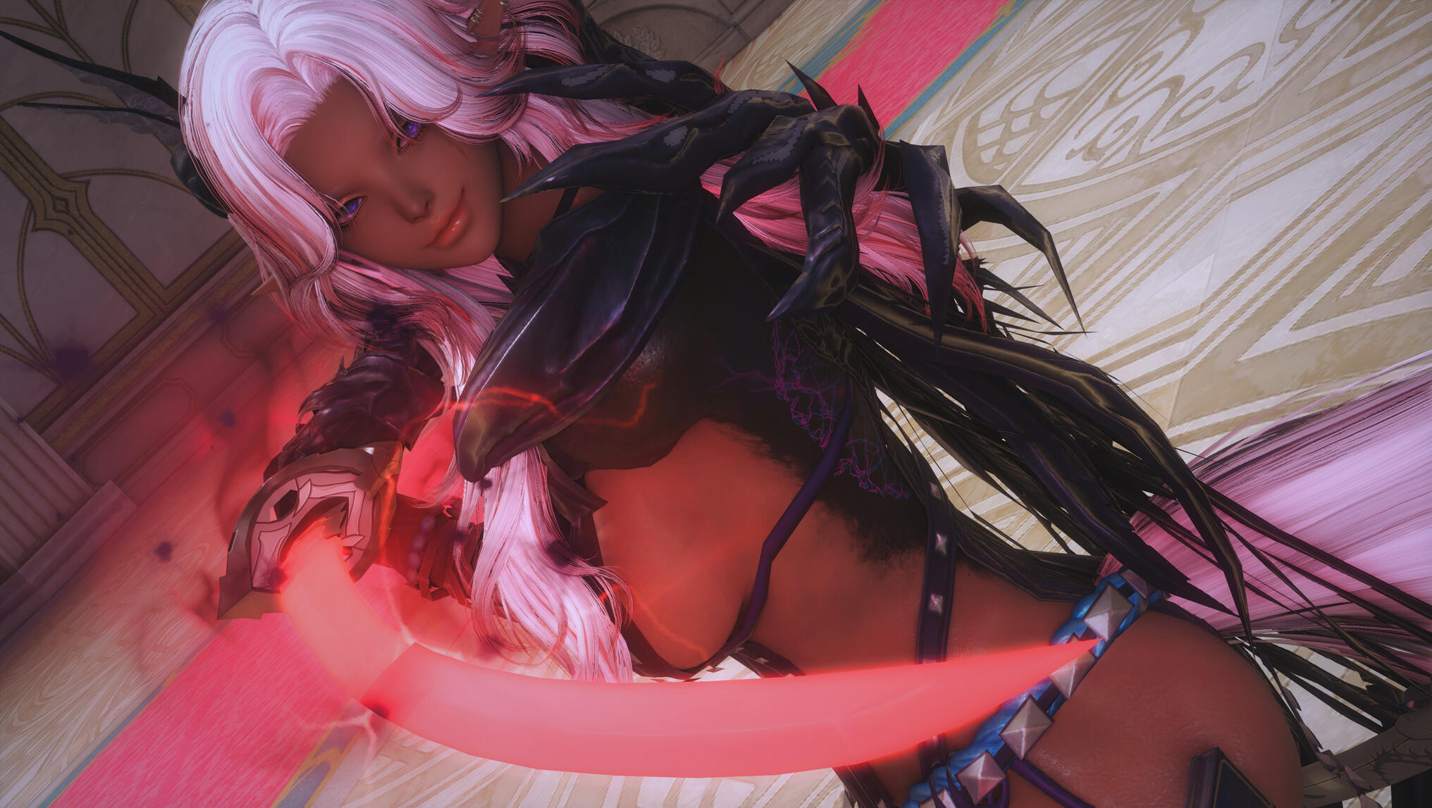 Aldra stepped out of Kugane Castle, her report to the magistrates delivered—another case of sudden aether thefts resolved. Yet even as the officials praised her efficiency, something within her felt… unsteady. The shift in her appearance—hair, eyes, even the hue of her tail turning a silvery pink—had brought an unexpected sense of wholeness, as though pieces of herself that had long been splintered were finally aligned. Her body felt complete.But her instincts told her the unease was different. Deeper. Not tied to the transformation, but to the quiet, pulsing intuition that she wasn’t alone inside her own skin. The idea seemed impossible… and yet the thought of pregnancy lingered stubbornly in her mind. She needed answers.With Void Naught resting in her left hand, Aldra made her way toward the district where Kugane’s nurses and white mages tended the people. But before she reached the steps leading down from the castle walkway, her senses flared. A petty thief, bold enough to strike within the halls of the bakufu, lunged for an unsuspecting traveler.Aldra’s response was instinctive.She drew her odachi in a single motion, crimson light rippling along the blade as its edge sang. In the next breath she was upon the would-be robber, disarming him cleanly—mercifully—before the guards could even react. The thief fled, stumbling, and Aldra sheathed Void Naught without a word.There were more pressing truths she needed to face.And so she continued on, her steps steady despite the questions twisting quietly within her